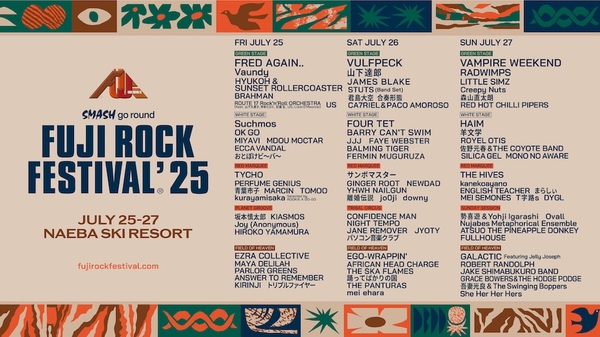 2025年7月25日(金)、26日(土)、27日(日)の3日間、新潟・苗場スキー場にて開催される〈FUJI ROCK FESTIVAL ’25〉の最終ラインナップとタイムテーブルが発表された。