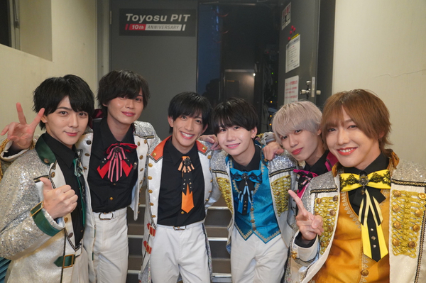 他のメンバーもましろの後を追い、全員がステージから姿を消したかと思うと、それぞれメンバーカラーのファーと〈Cool〉の文字をかたどったサングラスを身に着けて再登場。“ぴえん虫”へとつなげた。セリフパートでは「デートのときヒール履いてもいいけど170cm以下ね?」(ゆいと)、「俺のパパは、お金持ち!」(けんご)など、個性あふれるフレーズが飛び出す。そして「ここからはペンライトを挙げていきましょう!」の呼びかけで、“脳内再生”やクラップが入る“Rock with you”へと勢いをつなげた。