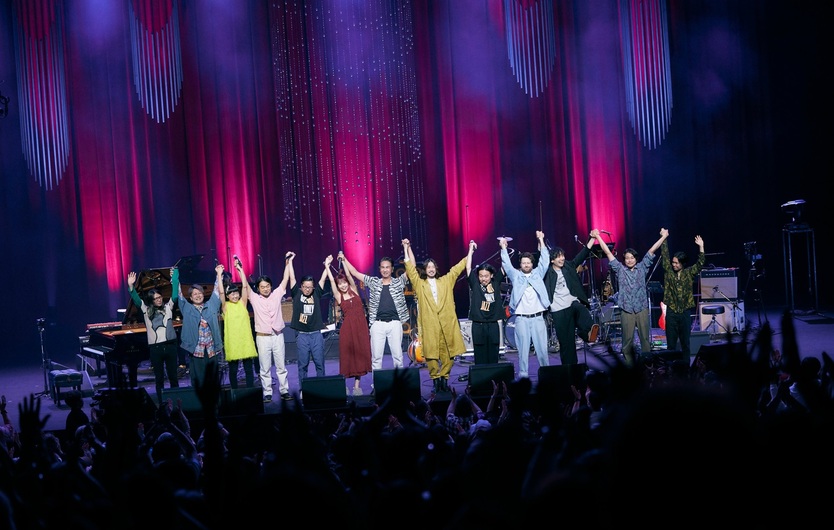 もちろん最後は出演者が全員ステージに出てきて、田島貴男/Original Loveの〈ジ・アンセム〉的な風情を湛えた“接吻”をみんなで歌い継ぎ、演奏し合う。秀でた楽曲はエヴァーグリーンであり、強いと思わせる場面でもありますね。エンドロールではリハの模様なども簡潔に紹介されるが、それも祝福された感覚を持つ本編を見た後だと興味深い。