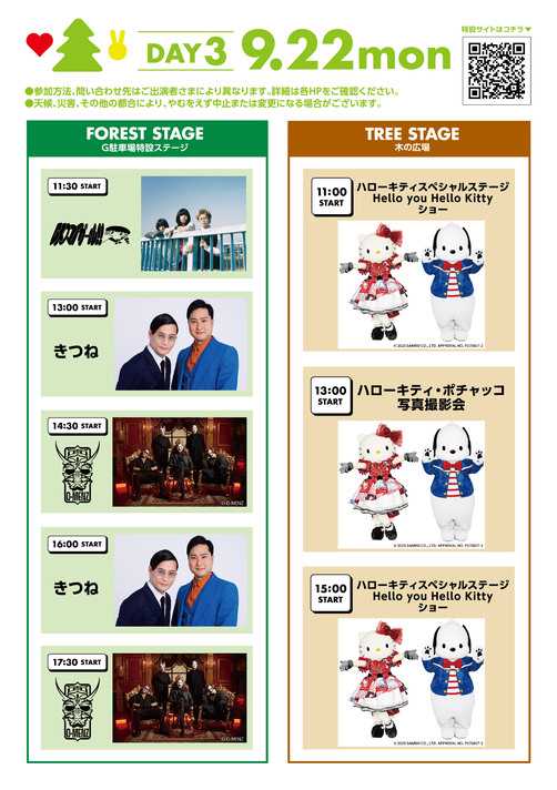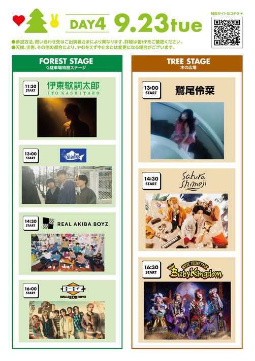 FOREST STAGE(G駐車場特設ステージ)・TREE STAGE(1F 木の広場)