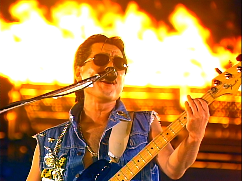 ライブの規模感を象徴する幅120メートル・高さ75メートルの巨大なステージセットを縦横無尽に駆け巡りながら、若かりし日の3人が演奏するドラマティックなパフォーマンスが見どころになっている。