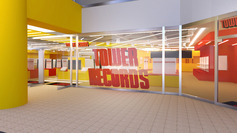 また、店舗エントランスには新しく巨大なTOWER RECORDSロゴのモニュメントを設置。よりスタイリッシュで目を引く外観に生まれ変わる。