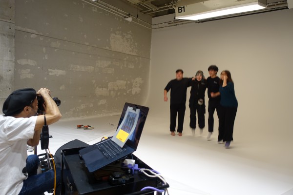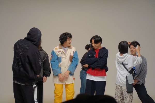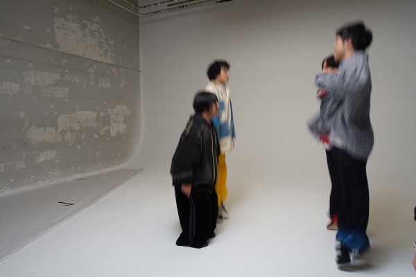 前回は公園の桜の下で撮影を行いましたが、今回はアルバムタイトル『physical mind』をイメージしてシンプルな背景で撮影をすることに。