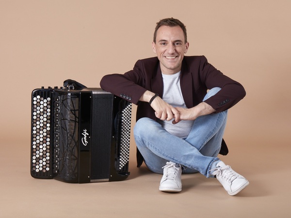 フランスの革新的なアコーディオン奏者、フェリシアン・ブリュが昨年10月に来日し、ピエール・デュムソー指揮 群馬交響楽団との共演で、アコーディオンとオーケストラのために書かれた作品を披露した。ティボー・ペリーヌの“アコーディオン奏者のカプリス”とファビアン・ワクスマンのアコーディオン協奏曲“時の島”、この2作はアルバム『二つの愛~パリ・アルバム』にも収録されている。