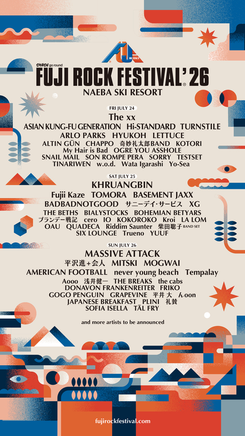 2026年7月24日(金)、25日(土)、26日(日)の3日間、新潟・苗場スキー場にて開催される〈FUJI ROCK FESTIVAL ’26〉の第1弾ラインナップ、各出演アーティストの日割りが発表された。