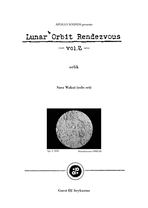 APOLLO SOUNDSが2026年4月2日(木)に東京・下北沢SPREADで開催するライブイベント〈Lunar Orbit Rendezvous Vol.2〉。2019年8月に開催され、大きな反響を呼んだ同名イベントが、実に7年ぶりに待望の復活を果たす。時を超えて再び掲げられるこのタイトルは、APOLLO SOUNDSの〈現在地〉と〈これから〉の新たな邂逅の場となることを示している。