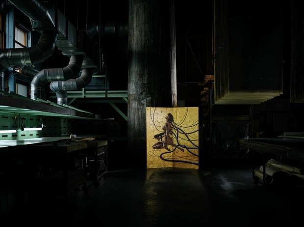 ユーマ株式会社が、〈攻殻機動隊展〉にて展示・販売中の〈TechnoByobu〉(テクノ屏風)の購入者への特典として、士郎正宗による書き下ろし屏風画の洋金箔仕立てのステッカーが付属すると発表した。