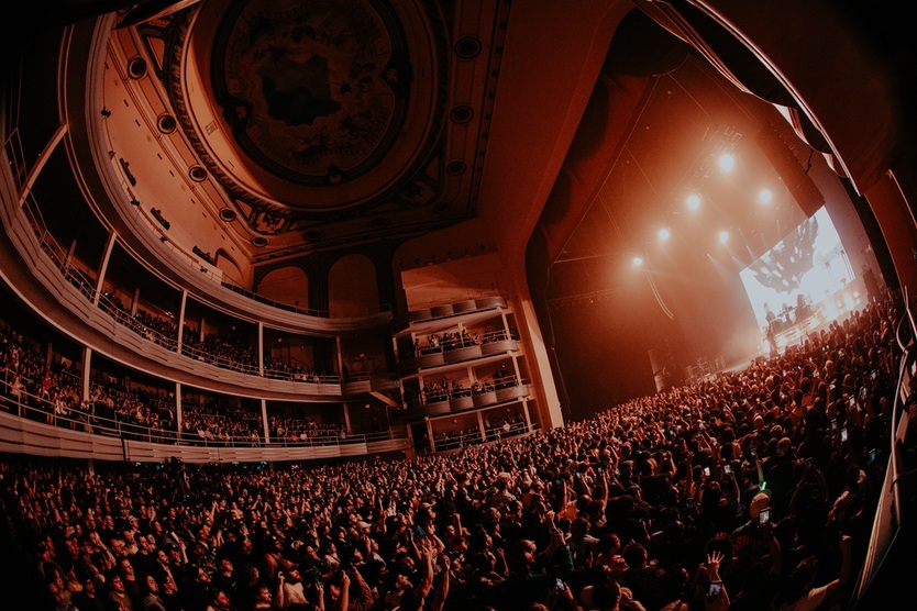 世界最大級のフェスのひとつ、カリフォルニア州で開催されるコーチェラに初出演し、Gobiステージでいきなりトリを務めた彼ら。2人はコーチェラ出演を皮切りに、ニューヨークシティ、シカゴ、メキシコシティを巡る〈NORTH AMERICA TOUR 2026〉を開催。その一環として、4月13日にはニューヨークのハマースタイン・ボールルームで初の北米単独公演を行った。本稿では、その記念すべき初単独公演の模様をレポートする。