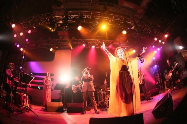 Miho Fukuhara & The Culture xxx(xxxの部分は書いてもいいと思うのだが、一応伏せておくので知らない人は各自調査を!)として行われた2年ぶりの〈THE SOUL EXTREME SESSION〉。往年のソウル/ファンクをはじめとする名曲群に加えて自身の楽曲もソウル・アレンジで披露する本企画、福原のバックでタイト&クールなグルーヴを紡ぎ、主役の歌を引き立てながら痺れるプレイを聴かせたのは、バンマスの高野勲(キーボード)に藤井一彦(ギター/THE GROOVERS)、ナガイケジョー(ベース/SCOOBIE DO)、みどりん(ドラムス/SOIL & "PIMP" SESSIONS)、田中和(トランペット/勝手にしやがれ)、田浦健(サックス/勝手にしやがれ)、そしてコーラスの高城奈月子(SOULMATICS)というメンバーだ。