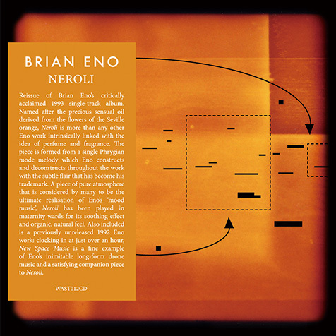 続く『The Shutov Assembly』(92年)と『Neroli』(93年)は、うってかわってアンビエント系。前者はロシア人画家S・シュトフに捧げられた80年代後半録音の音源集で、同時期に作られたディスク2の音源共々、デジタル機材を多用した硬質なトーンが際立つ。『Thursday Afternoon』を更にそぎ落とし、神仙的世界に達した後者こそは、イーノのアンビエント・ワークの最高到達点だろう。収録されたのは、60分弱の曲がたったひとつ。音というよりも、香りに近い。実際「ネロリ」とは、セビリア・オレンジの花から採取されるオイルのことらしい。本作が産院で使用されていたというエピソードにも頷ける。ディスク2収録の1時間強の作品は 『Discreet Music』の続編的な夢幻ドローン音響だ。