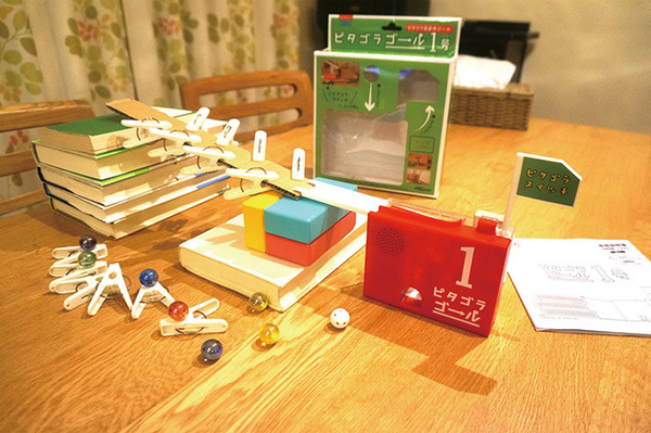 そこにたどり着くまでのコースとなるピタゴラ装置を作り上げるのは自身であり、そこは脳みそを使いたい。目の前にあるマグカップやスマホ、手帳や弁当箱だって玉が転がる運動の一部に成りえる。パッケージにはピタゴラ装置を作るときのミニヒントが封入されていて、さっそく投げ出そうとする子どもや大人を阻止。どうやって転がすか?どうやったらおかしな動きを見せるか?から、いつの間にか考えは、どうやったら面白いか?どうやったら人が喜ぶか?にシフトチェンジされるだろう。家族や友人と笑うために脳と雑貨をフル活用させることになる。