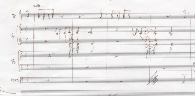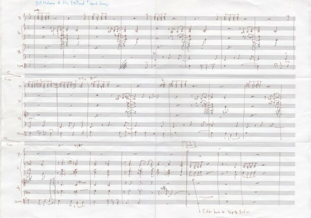USのサックス奏者、ビル・ホールマン率いるビル・ホールマンズ・グレイト・ビッグ・バンドの60年作『Bill Holman's Great Big Band』収録曲“Speak Low”より、気に入っている冒頭部分を採譜しました。