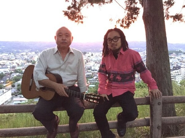 車内での音楽談義に夢中になっている間に、いつしか日が傾き空色が茜に染まり始めていた。ドライヴの終着地は羊山公園の頂上にある〈見晴らしの丘〉。秩父市街が見渡せる、茜空の素晴らしいロケーションでタクシー・サウダージは“かんのん”と“サマータイム”の2曲を歌ってくれた。最後に、秩父に住まいながら強烈な個性を磨き続ける2人に、お互いの違いについて訊くと――「僕は梅沢さんとは正反対のことをやってて、秩父に戻ってきて〈秩父〉をテーマに創作をしてる。梅沢さんは自分という〈個〉の内側に向かっていく印象があります」とは笹久保の弁。一方のタクシー・サウダージは「僕はあちこち住んできたから、秩父の良さもわかっているけど、確かにそこにはこだわっていないかもしれない。むしろ自分の表現というか、普通に誰もが歌えるものこそ〈歌〉だと思っているから。日本も歌謡曲の時代は誰もが歌を知っていたし、ブラジル人なんて歌があればだれでも歌うからね」。