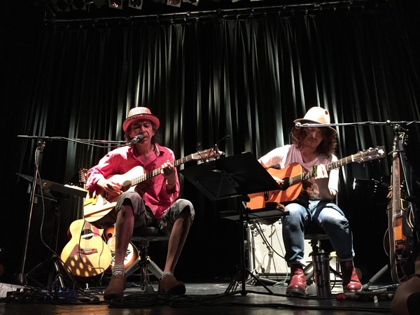 ユウジさんはかつてこのギターを間近で見たことがあった。東海大学体育学部体育学科時代、ある年の学園祭に渡さんがやってきて、ライヴを行った。そのとき、まだ出来たてホヤホヤだった14フレット以上にフレットが打たれていないこのYAMAHAの特注ギター(74年に作られた高田渡のカスタム・モデルで、制作者はギター・デザイナーのテリー中本)をステージ上でお披露目していたのを、ユウジさんは明確に記憶していた。思い出のなかに住み続けていたあのギターとこうして一緒のステージに並んでいるなんて。とても愛おしそうに見つめる彼の眼。そんなことがユウジさんを珍しく感傷的な気分に駆り立てていたことは間違いない。